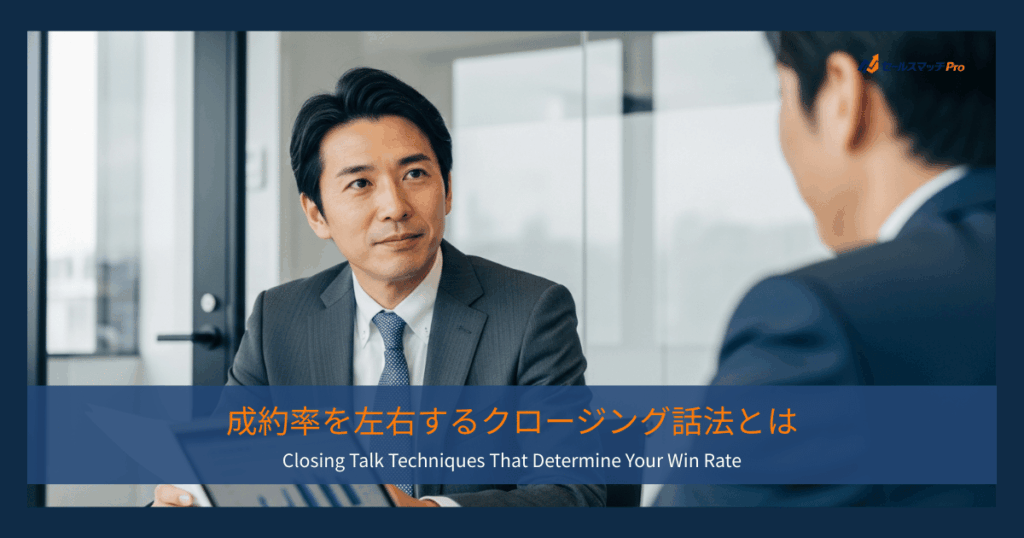 営業活動において、商談を成約へと導く最終工程がクロージングです。提案内容が優れていても、クロージングの進め方を誤ると受注を逃してしまうケースは少なくありません。本記事では、成約率を高めるための実践的なクロージングのコツとテクニックを体系的に整理します。BtoB営業の現場で即活用できる話法や心理テクニック、断り文句への切り返し話法、よくある失敗パターンとその回避策まで網羅していますので、商談の成果を一段引き上げたい方はぜひ参考にしてください。